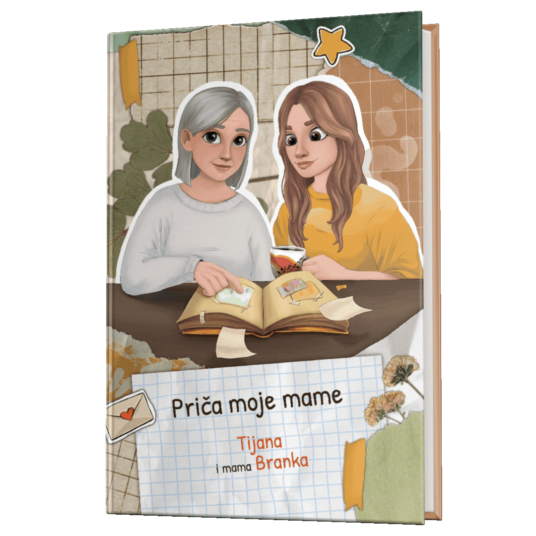 Pokloni mami personalizovanu knjigu u koju će zapisati svoje uspomene, dogodovštine i priče koje su joj oblikovale život. Kada je popuni, knjiga će postati dragocena uspomena kroz koju ćeš je upoznati bolje i kojoj ćeš uvek moći da se vratiš.
